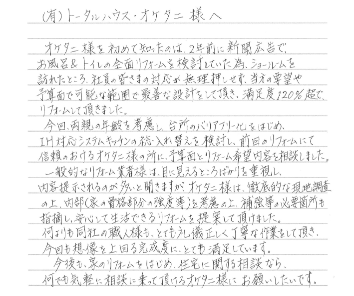 またリフォームのご計画がございましたら、お声をかけて頂ければ幸いです。
